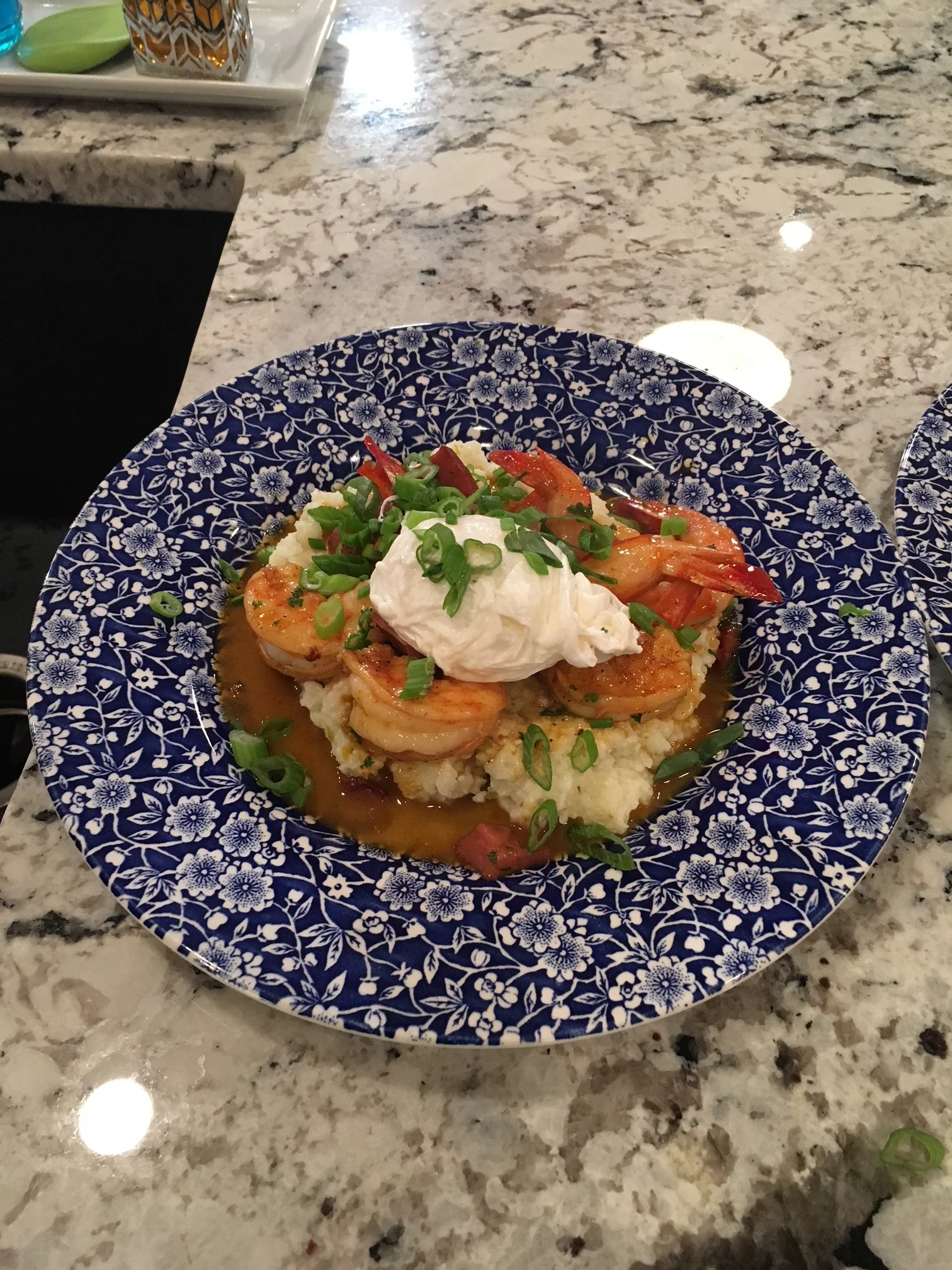 Plate grits in mound on plate or large bowl, top with shrimp and Tasso then spoon sauce over top. Finish by topping with Poached Egg and chopped Green onions. Enjoy.